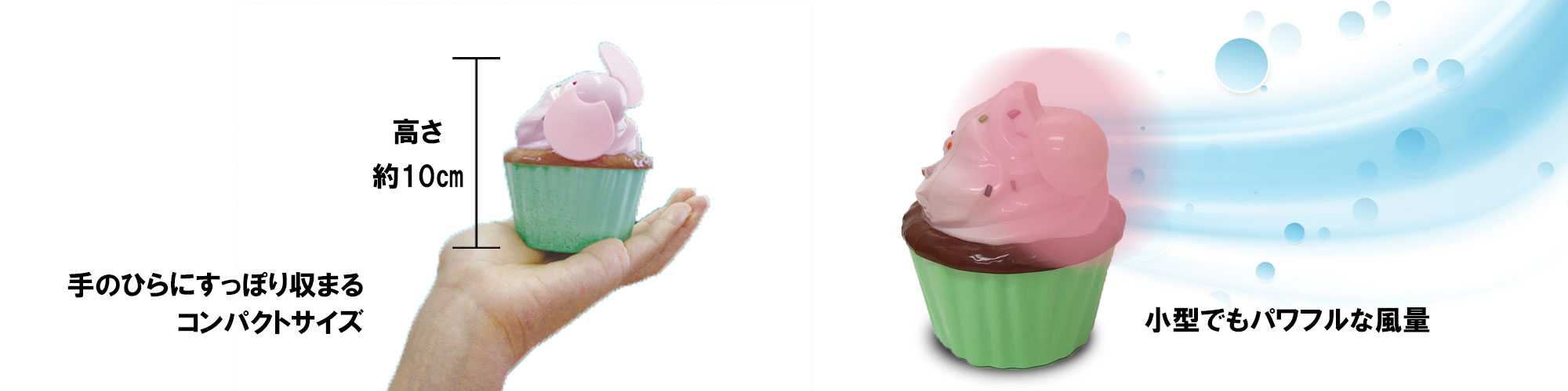 高さわずか10㎝の手のひらサイズ。なのにパワフルな風量!